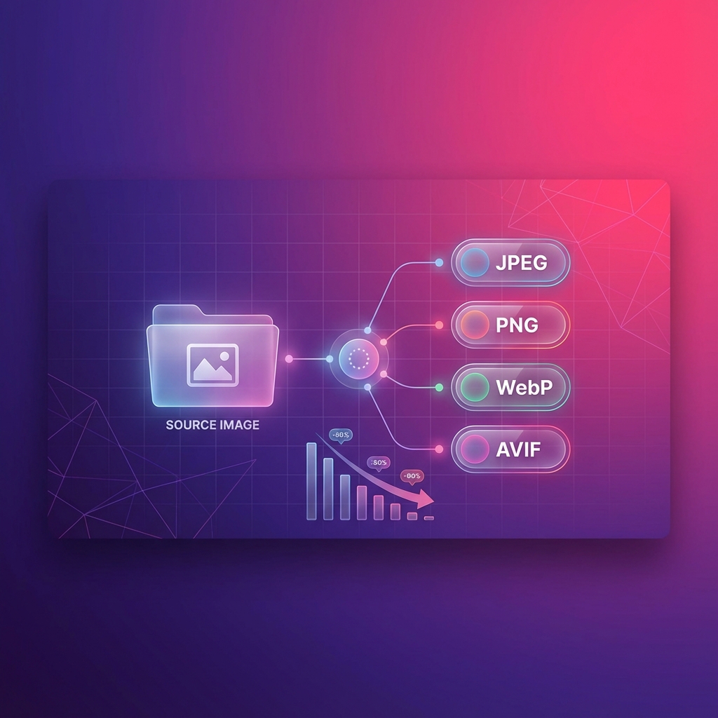 Previously, Squoosh preserved the original format of your images during compression. While this worked great for most use cases, many users needed to convert images to more efficient formats like WebP or AVIF for web optimization.